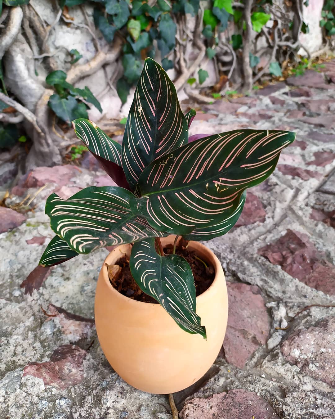 The underside of the leaves are burgundy in color and. Local delivery is also possible within. The Pinstripe Calathea comes from South America.